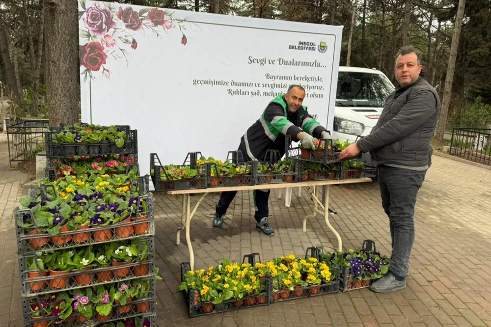 Bursa İnegöl’de mezarlıklar çiçek bahçesine büründü