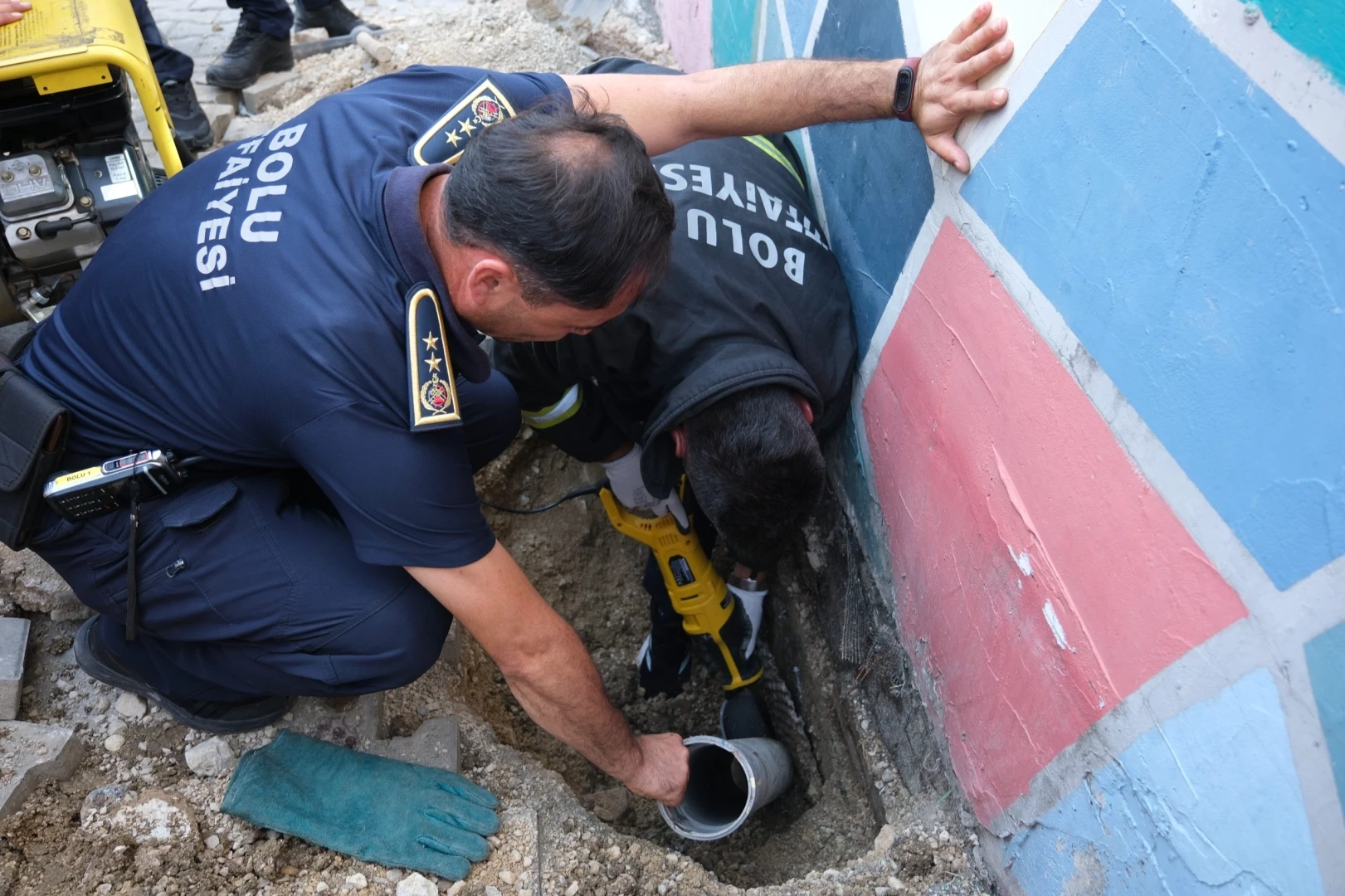 Duyarlı bir vatandaşın ihbarı üzerine harekete geçen Bolu Belediyesi ekipleri, kanalizasyon borusuna düşen yavru kediyi yaklaşık bir saat süren kurtarma çalışmasının ardından sıkıştığı yerden kurtardı.