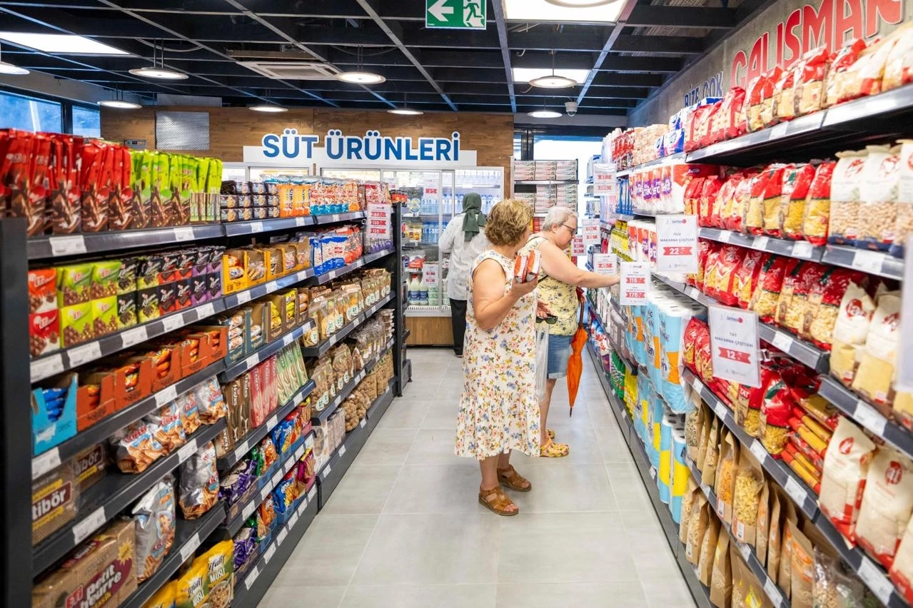 İZMİR (İGFA) - İzmir Büyükşehir Belediye Başkanı Dr. Cemil Tugay’ın İzmirliye sözünü verdiği tanzim satış mağazaları İZMAR, dokuzuncu şubesini Konak Kemeraltı Balıkçılar Meydanı’nda hizmete açtı. İzmir Büyükşehir Belediyesi’nin iştiraki İZTARIM AŞ tarafından hayata geçirilen İZMAR’lar açıldığı günden beri İzmirlinin gözdesi oldu. Türkiye’nin artan enflasyonunda halkı uygun fiyatlı ve güvenilir alışverişle buluşturan İZMAR’larda, İzmir Büyükşehir Belediyesi tarafından tamamen yerli besiden hazırlanan et ürünleri, İzmirli üreticilerden alınıp işlenerek üretilen süt ürünleri, su ve Halk Ekmek ürünleri de tek çatı altında satışa sunuluyor. Alışverişin kalbi Kemeraltı’nda açılacak şubeyi dört gözle bekleyen İzmirliler, mağaza satışa başlar başlamaz markete akın etti.