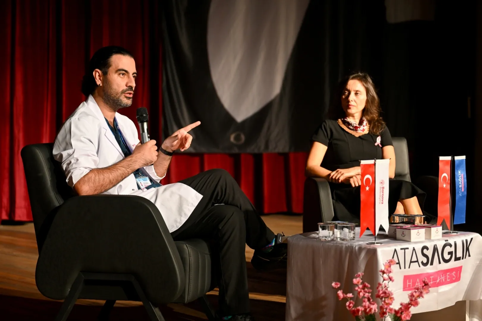 İZMİR (İGFA) - Bornova Belediyesi, Özel Ata Sağlık Hastanesi ile ortaklaşa düzenlediği “Meme Kanseri Farkındalık Paneli”, Altındağ Atatürk Kültür Merkezi Yıldız Kenter Sahnesi’nde gerçekleştirildi. Panelde Genel Cerrahi Uzmanı Op. Dr. Utku Tanoğlu ve Kadın Hastalıkları ve Doğum Uzmanı Op. Dr. Gökben Yüksel konuşmacı olarak yer aldı. CHP Kadın Kolları MYK Üyesi Rahşan Nazlıoğlu da panele katılarak Bornova Belediyesi’nin farkındalık çalışmasına destek verdi.