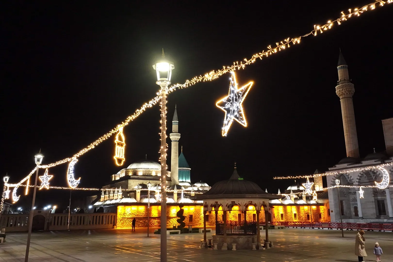 Ay yıldız, hilal ve kandil gibi Ramazan ayının birlik, paylaşma ve huzur iklimini yansıtan süslemeler, şehir merkezini özellikle akşam saatlerinde ışıl ışıl bir görünüme kavuşturdu. Özellikle Mevlana Meydanı ve çevresinde yapılan aydınlatmalar, Konyalılar başta olmak üzere şehre gelen yerli ve yabancı misafirlere 11 ayın sultanı Ramazan’ın manevi coşkusunu dolu dolu yaşatıyor.