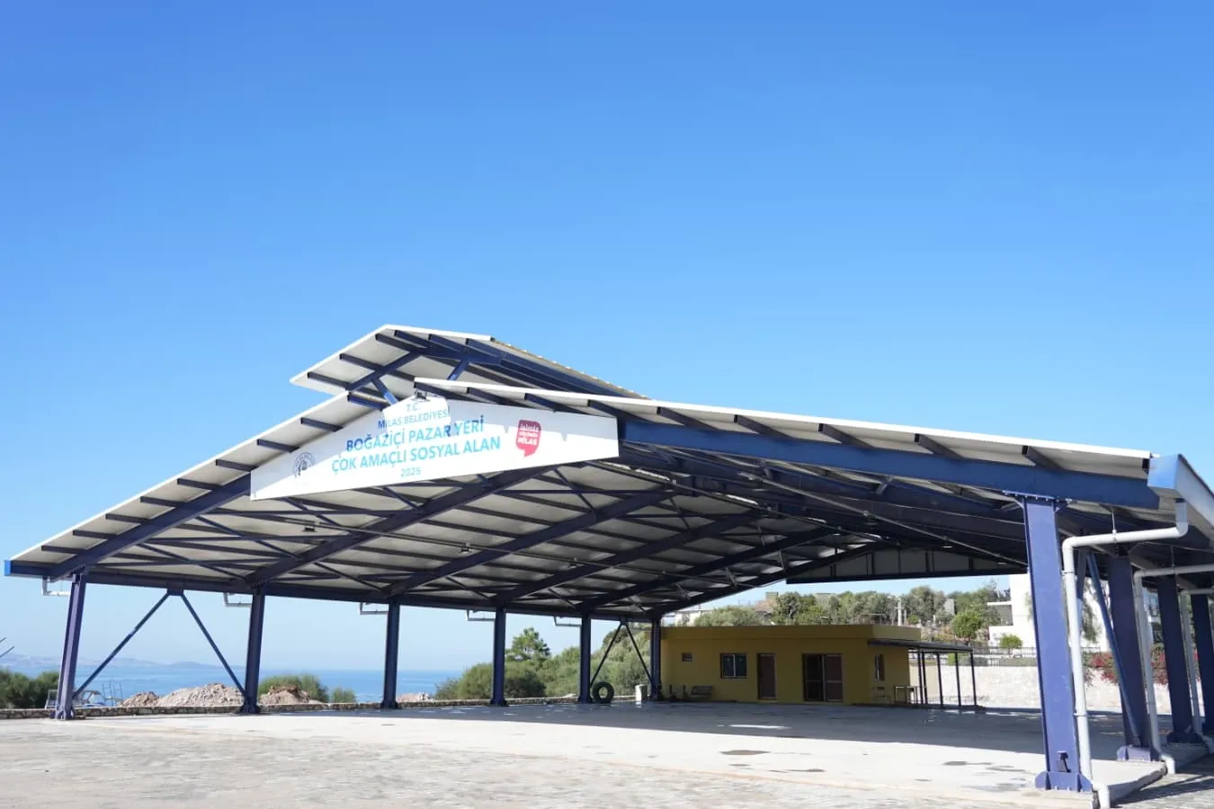 Muğla Milas Belediyesi tarafından Boğaziçi Mahallesi’nde yapım çalışmaları tamamlanan Çok Amaçlı Sosyal Alan ve Pazar Yeri açılışa hazırlanıyor.