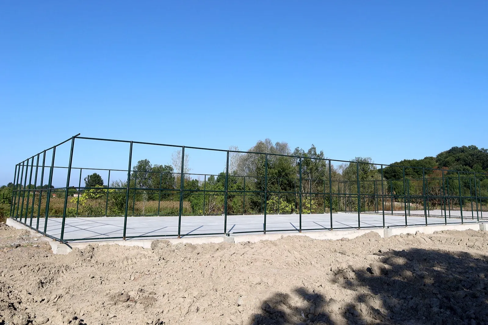 Alanı çevreleyecek demir profiller montajlandı, basketbol ve voleybol sahalarının beton imalatı tamamlandı, sentetik çimle kaplanacak futbol sahasında ise tesviye sürecine geçildi.