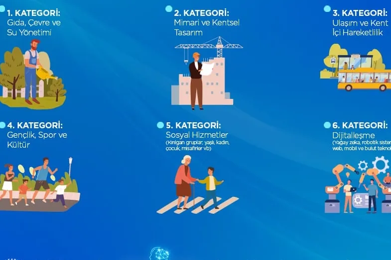 Yarışma “Gıda, Çevre ve Su Yönetimi, Mimari ve Kentsel Tasarım, Ulaşım ve Kent İçi Hareketlilik, Gençlik, Spor ve Kültür, Sosyal Hizmetler ve Dijitalleşme” olmak üzere toplam 6 farklı kategoride gerçekleştirilecek.
