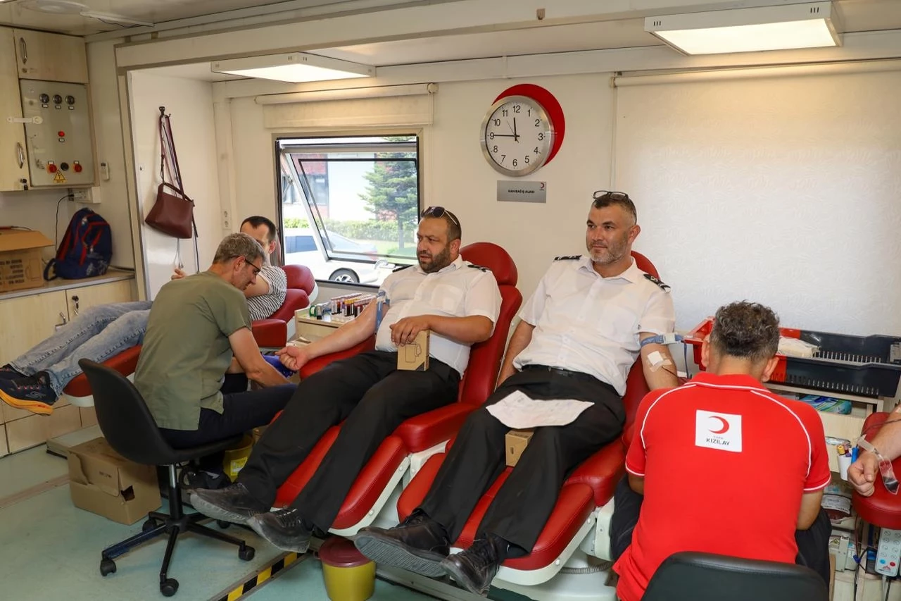KOCAELİ (İGFA) - Ulaşımpark’ın gönüllü 101 personeli kan bağışında bulunarak acil ihtiyaç sahiplerine adeta hayat oldu. UlaşımPark Genel Müdürlüğü binasında kurulan geçici kan bağış noktasında sabahın erken saatlerinden itibaren yoğunluk yaşandı. Sağlık kontrollerinden geçen personel, sırasıyla kan vererek yaşatmanın mutluluğunu yaşadı.
