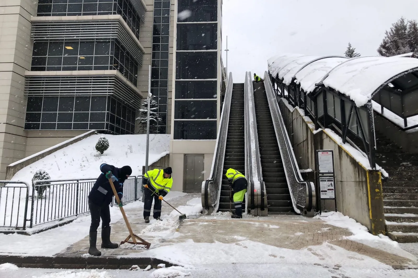 Kocaeli Büyükşehir Belediyesinin sorumluluk alanındaki ana arter, cadde ve bulvarların ulaşıma elverişli olması için kar küreme ve tuzlama çalışması yapan ekiplerin yanı sıra kent merkezindeki kaldırımlarda da kar küreme ve temizlik çalışması gerçekleştiriliyor. Bu kapsamda Umuttepe Kocaeli Üniversitesi Hastanesi'ndeki yol ve kaldırımlar ile poliklinik ve acil servis girişlerinde kar küreme çalışmaları sürüyor. Ekipler; poliklinik, acil servis ve hastane ana girişleri, durak çevreleri ve vatandaşların yoğun olarak kullandığı yaya geçiş güzergâhlarında kar temizliği ve tuzlama çalışmalarını yerine getiriyor. Soğuk havaya bağlı oluşabilecek buzlanmaya karşı önlemler artırılırken, hastane bölgesinde yaya ve araç trafiğinin kesintisiz devam etmesi sağlanıyor.
