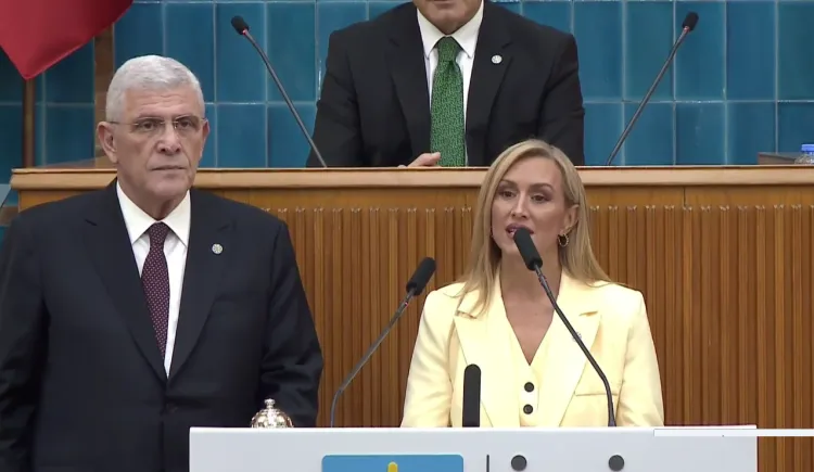 Rozet takma töreni, İYİ Parti grup toplantısında gerçekleştirildi ve Genel Başkan Müsavat Dervişoğlu tarafından Özkal Sayan'a takıldı.