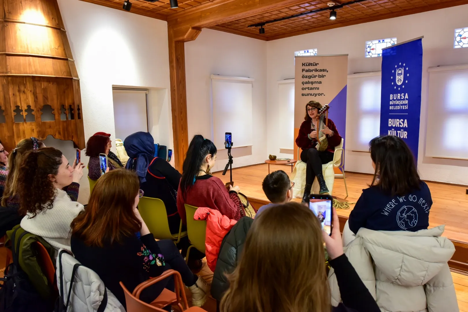 Anlatıcı Beyza Akyüz, Bursa’ya dair hikâyeleri Ramazan’ın manevi atmosferi eşliğinde anlattı. Katılımcılar, şehrin kültürel dokusunu ve geleneklerini yeniden keşfetme fırsatı buldu.