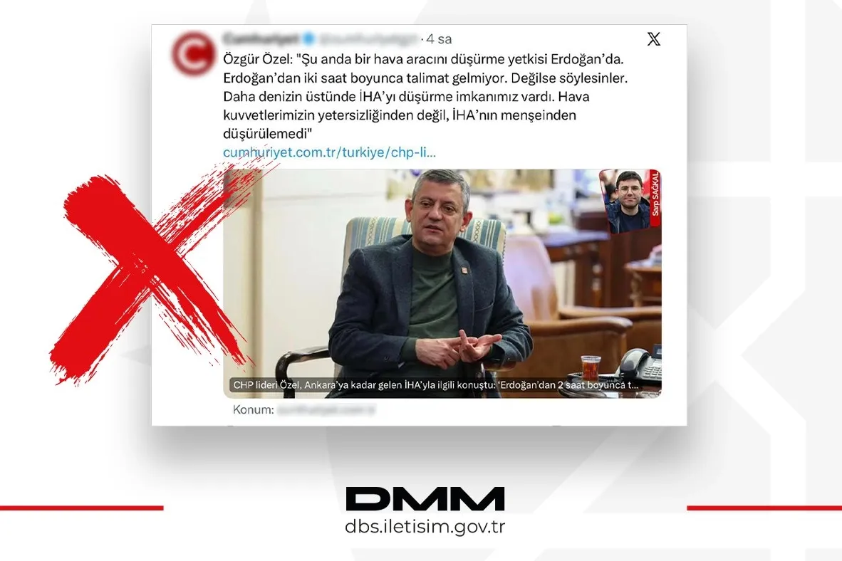 İletişim Başkanlığı bünyesindeki Dezenformasyonla Mücadele Merkezi, bazı basın organlarında Cumhurbaşkanlığı talimatıyla İHA’nın geç düşürüldüğü iddialarının gerçeği yansıtmadığını açıkladı.