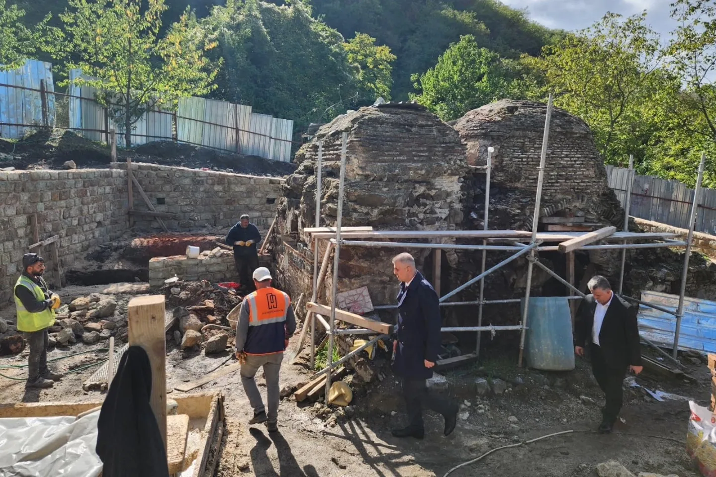 KOCAELİ (İGFA) - Gölcük Belediyesi'nin başlattığı çalışma ile Yukarı Halıdere'de bulunan tarihi Osmanlı dönemi hamamı, yeniden hayat buluyor. Bu kapsamda “1. grup korunması gerekli taşınmaz kültür varlığı” olarak tescilli olan Yukarı Halıdere tarihî Osmanlı dönemi hamamında restorasyon çalışmaları devam ediyor. Tarihi hamamı ziyaret ederek incelemelerde bulunan Gölcük Belediye Başkanı Ali Yıldırım Sezer, çalışmalar hakkında yetkililerden bilgi aldı.