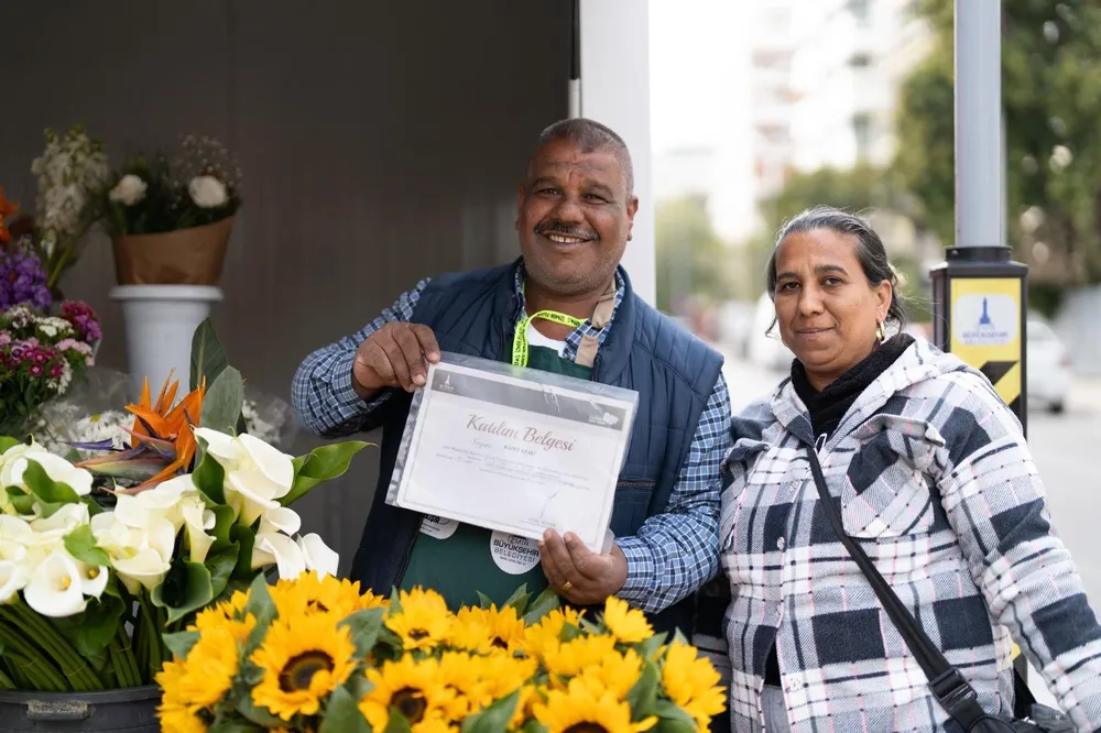 35 alan ve 215 branşta verilen eğitimler sayesinde kursiyerler hem iş sahibi oldu hem de kayıt dışı çalışma koşullarından kurtularak belediye denetiminde güvenli şekilde üretim ve satış yapmaya başladı.